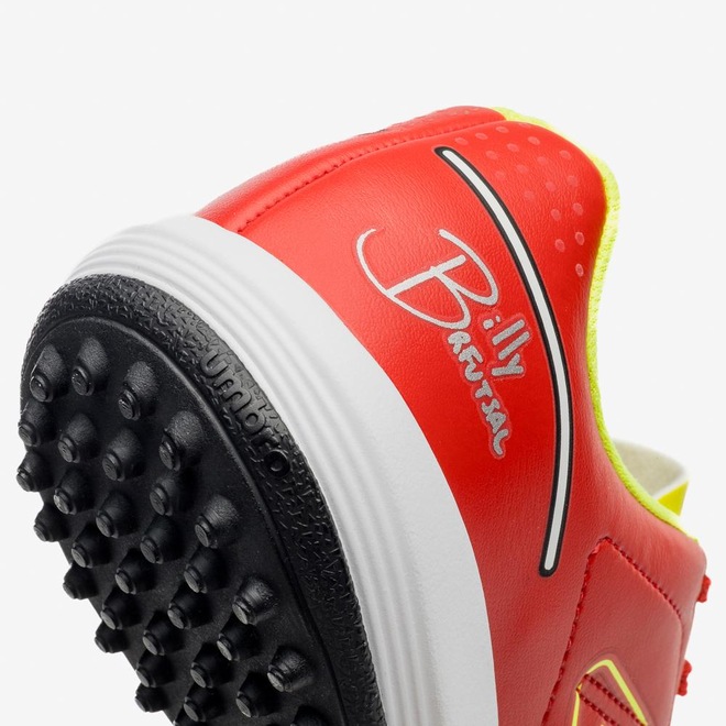 A estética da Chuteira Society Umbro BR Futsal Jr é inspirada no modelo adulto, trazendo um visual moderno e atraente. O grafismo exclusivo no cabedal (parte superior do calçado) destaca-se, oferecendo um toque de originalidade e personalidade. Além disso, a assinatura do Billy e o QR Code que direciona para a mídia social do BRFUTSAL adicionam um elemento interativo, conectando os jogadores com o universo do futsal.