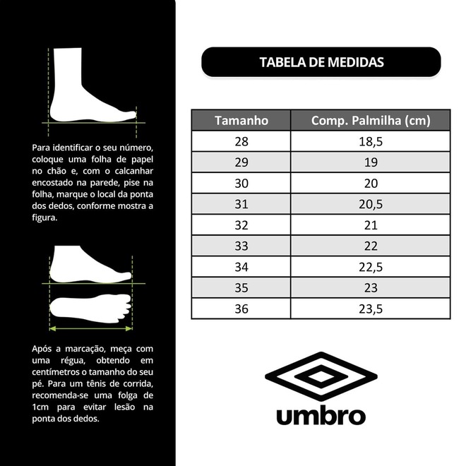 A chuteira Society Umbro Br Futsal Jr é a escolha ideal para os jovens craques iniciantes e intermediários. Com um design moderno e funcional, a chuteira é feita em parceria com o influenciador Billy do canal Br Futsal. Seu cabedal em material emborrachado e costura reforçada, oferecem máximo conforto e estabilidade durante as jogadas. Forro interno de poliéster e a palmilha macia em EVA, trazem conforto e comodidade. O solado com travas cônicas em TPU, proporciona durabilidade e desempenho. Como um toque a mais no design, o modelo possui QR Code que direciona para o canal Br Futsal. Garanta já! Nome: Chuteira Society Umbro Br Futsal Jr Gênero: Unissex Indicado para: Futebol Tipo: Society Trava: Cônicas em TPU Cabedal: Material emborrachado resistente Forro: 100% - Poliéster Palmilha: 90% - EVA 10% - Poliéster Solado: 60% - EVA / 40% - TPU Garantia: Produto original com garantia contra defeitos de fabricação em até 90 dias após o recebimento da mercadoria. Origem: Nacional Marca: Umbroref: M15RZ8