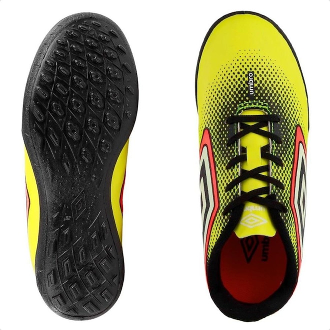 Com um design autêntico e ousado, a Chuteira Society Umbro Cannon é indicada para jogadores iniciantes que se destacam dentro do gramado sintético.