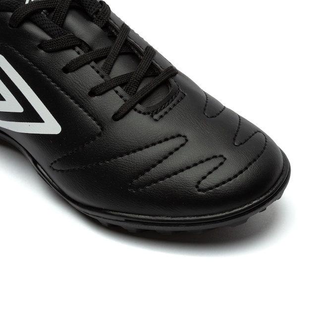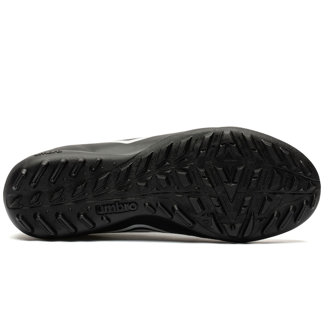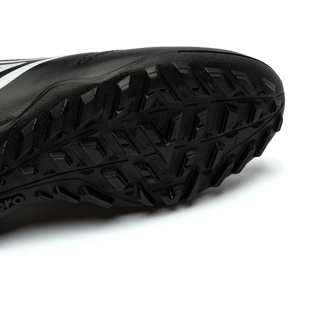 O solado em borracha oferece tração superior nas superfícies de gramado sintético, permitindo mudanças de direção rápidas e movimentos ágeis.
