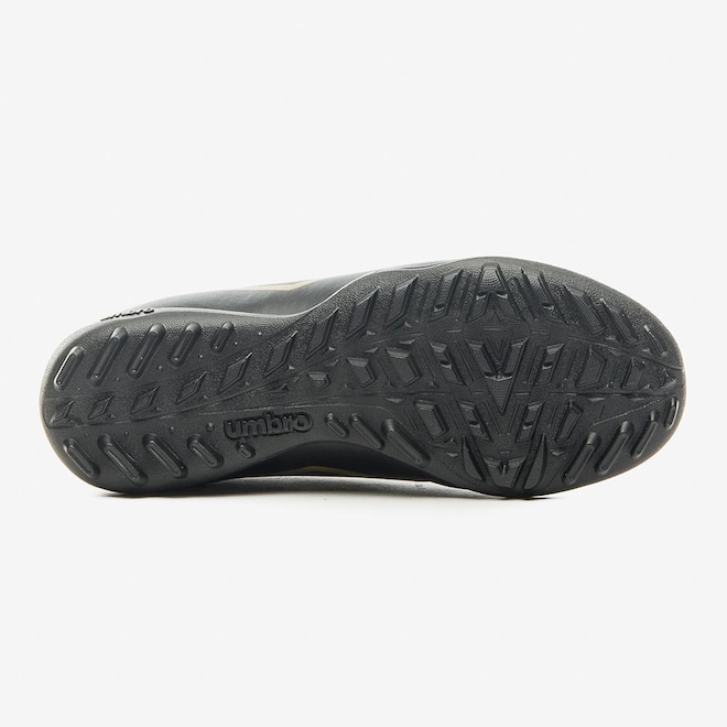O solado em borracha oferece tração superior nas superfícies de gramado sintético, permitindo mudanças de direção rápidas e movimentos ágeis.