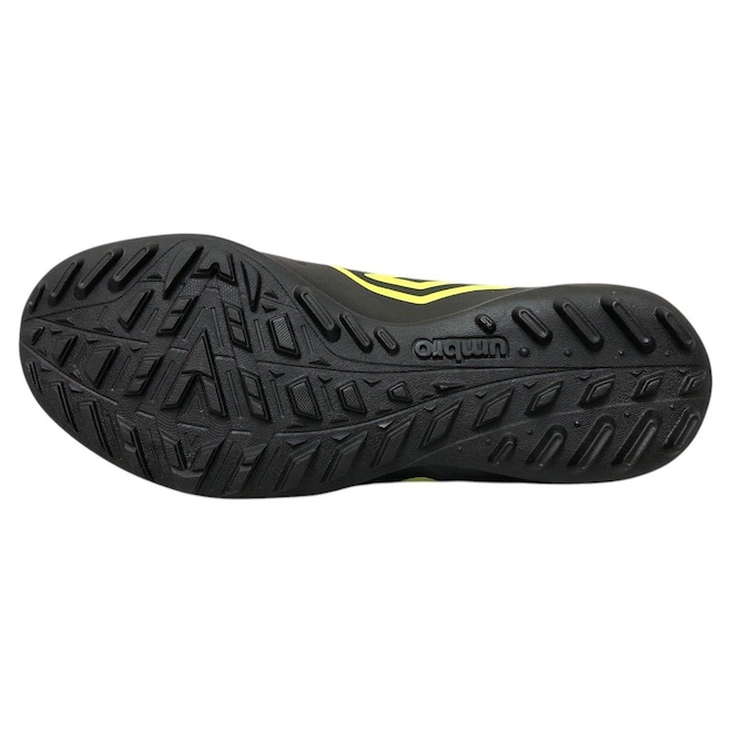 O solado em borracha oferece tração superior nas superfícies de gramado sintético, permitindo mudanças de direção rápidas e movimentos ágeis.