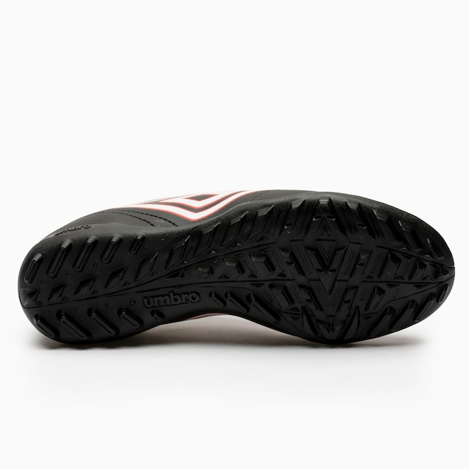 O solado em borracha proporciona excelente tração no campo, garantindo maior estabilidade e controle durante as jogadas.