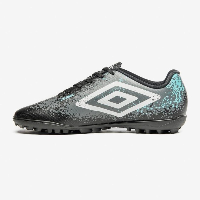 Mostre seu talento em campo com a chuteira de Society Umbro Cosmic. O cabedal é construído em material laminado com textura suave e aplicação de grafismo do tipo degradê com sobreposição de três cores de serigrafia. O Diamante Umbro está em destaque. Solado de futebol society HG construído em PVC. ,,GRAFITEref: M12H28