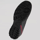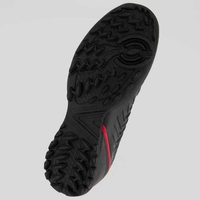 Já o solado emborrachado com travas baixinhas é específico para campos sintéticos com ponto de giro que facilita a mobilidade em todas as direções.