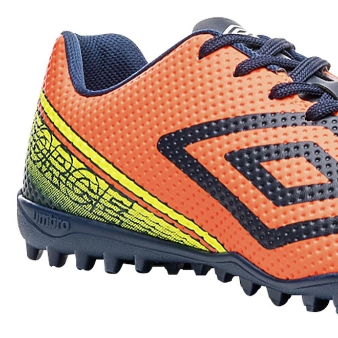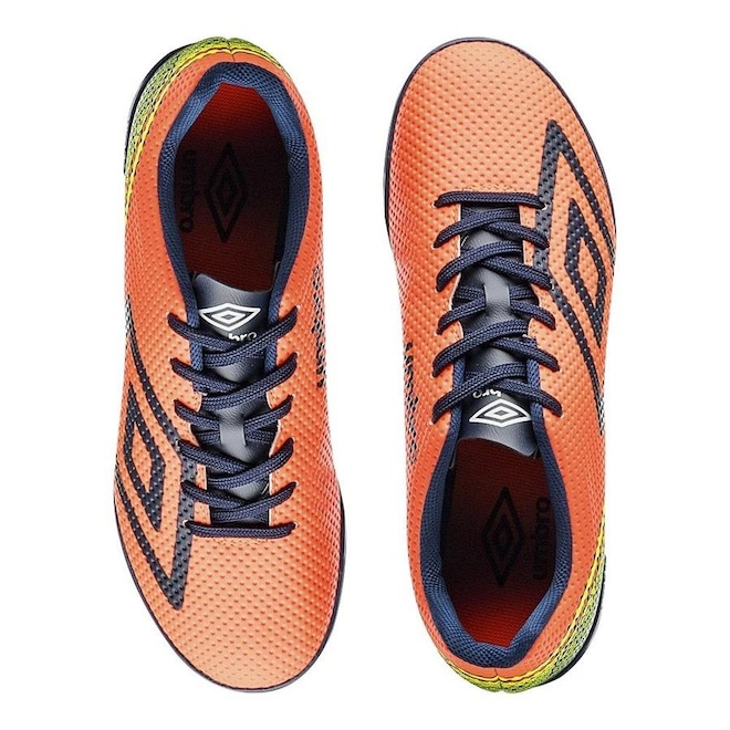 A Chuteira Society Force veio para elevar sua performance. O cabedal (parte superior do calçado) é produzido em material laminado de fácil manutenção com textura suave. Possui serigrafia de grafismos personalizados em degradê com duas cores, Diamante Umbro estilizado, forro interno em poliéster e palmilha macia em EVA com forro em tecido. O solado de society é produzido em PVC, que mantém o pé firme durante as corridas e dribles. Peça já a sua Chuteira Society Force e domine o jogo!