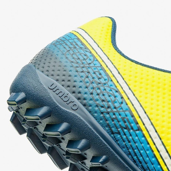 A Chuteira Society Umbro Force exibe um design diferenciado com degradê e bloco de cores. Indicada para jogadores iniciantes, ela traz textura integral e entrega de grip em toda a área da gáspea, o que auxilia o controle direcional dos passes e dribles. Cabedal assimétrico construído em material laminado com aplique em cilindro de baixo relevo, que confere textura integral e maior grip ao entrar em contato com a bola, e forro em tecido de poliéster. Possui arte gráfica em estampa perfurada, Diamante Umbro aplicado na parte frontal, assinatura do modelo estilizada na parte posterior com contraste de cores, atacador convencional e palmilha interna em EVA forrado para maior conforto. O solado de society HG é composto por PVC.