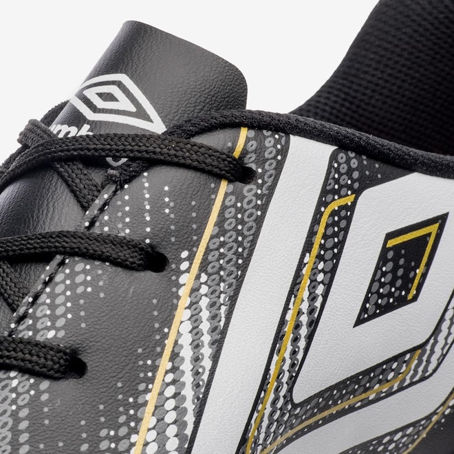 Com um visual diferenciado, a Chuteira Umbro Heatmap apresenta um cabedal confeccionado em material laminado, que garante durabilidade e resistência. O grafismo reticulado, juntamente com o icônico Diamante Umbro centralizado e a inscrição HM na parte traseira, traz um toque de modernidade e estilo. As cores disponíveis - preto, branco e dourado - permitem que você escolha a combinação que mais combina com seu estilo pessoal.