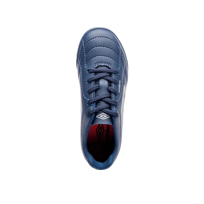 A Chuteira Society Umbro Class Footballer Jr é ideal para jovens jogadores que buscam qualidade e conforto para se destacar nas partidas, combinando design clássico e performance superior. O cabedal é em material laminado com textura de couro relax, artes gráficas em serigrafia e logo Diamante na lateral. A palmilha interna em EVA forrada garante conforto, e o solado de futebol society HG em PVC com travas em barra e chevron proporciona aderência.