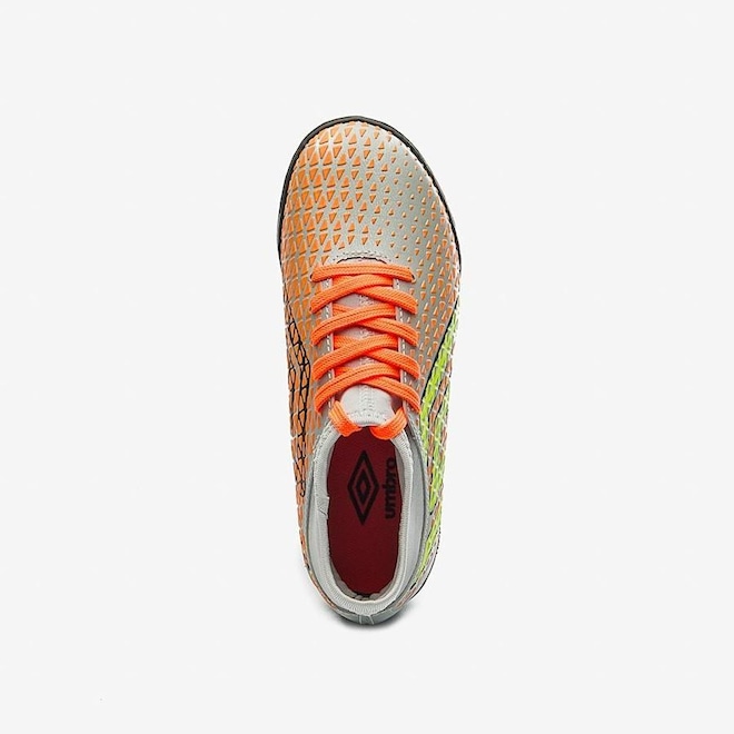 Com um design ousado e irreverente, a Chuteira Society Umbro Mutant Jr exibe arte gráfica personalizada com jogo de cores contrastantes e tom sobre tom. Indicado para os jogadores infantis e juvenis, o modelo oferece calce em meia de tecido com elastano para um ajuste confortável. Cabedal assimétrico slip-on confeccionado em meia de tecido com elastano na base e material laminado com alta frequência. Possui fechamento em cadarço para um melhor ajuste no pé, maxi Diamante Umbro Outline na lateral com assinatura do modelo e palmilha interna em EVA forrado. O solado de futebol HG é construído em PVC.ref: M13H89