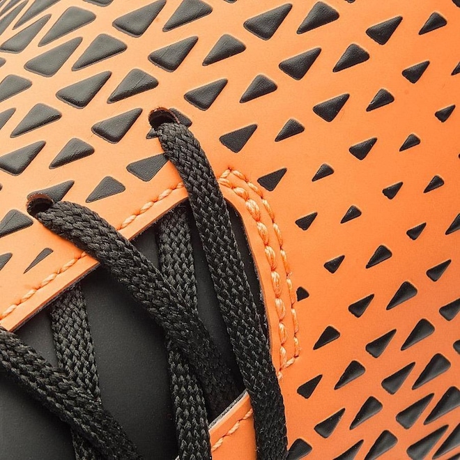 Com um design ousado e irreverente, a Chuteira Society Umbro Mutant exibe arte gráfica personalizada com jogo de cores contrastantes e tom sobre tom. Indicada para jogadores iniciantes, o modelo conta com textura em alto relevo para auxiliar o controle e domínio da bola no gramado sintético. Cabedal assimétrico confeccionado em material laminado com alta frequência e grafismo em serigrafia de 3 cores. Possui forro traseiro em Mesh com acabamento superior luvado, maxi Diamante Umbro Outline na lateral com assinatura do modelo e palmilha interna em EVA conformado para proporcionar um calce macio. O solado Agile de society HG é construído em borracha para maior durabilidade e aderência ao solo.