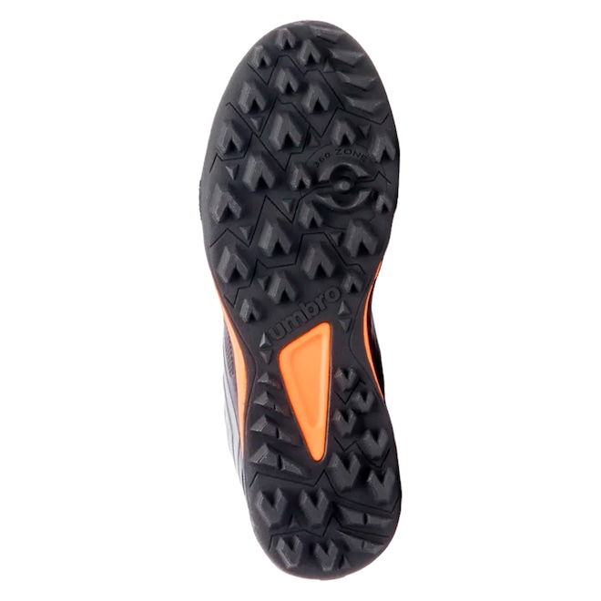 Seu solado é emborrachado e contém a 360° Zone que é uma tecnologia que garante rápida mudança de direção.