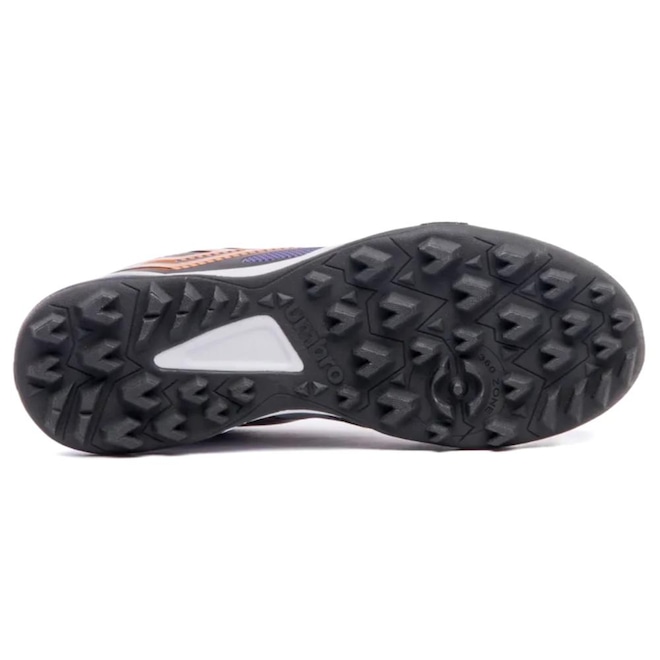 Seu solado é emborrachado e contém a 360° Zone que é uma tecnologia que garante rápida mudança de direção.
