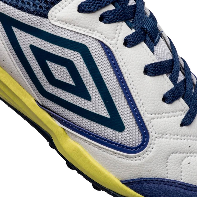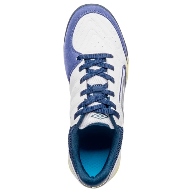 A Chuteira Society Umbro Pro Challenge Uptake traz inovação e desempenho para o futebol society. Seu design inspirado nos tênis court alia estilo e funcionalidade, com cabedal assimétrico feito em couro natural, camurça e microfibra extra macia na parte frontal. A tecnologia Soft Blue na palmilha garante amortecimento, enquanto a entressola em EVA e o solado em borracha antiderrapante com Vortex Grip e travas cônicas proporcionam máxima tração e estabilidade.
