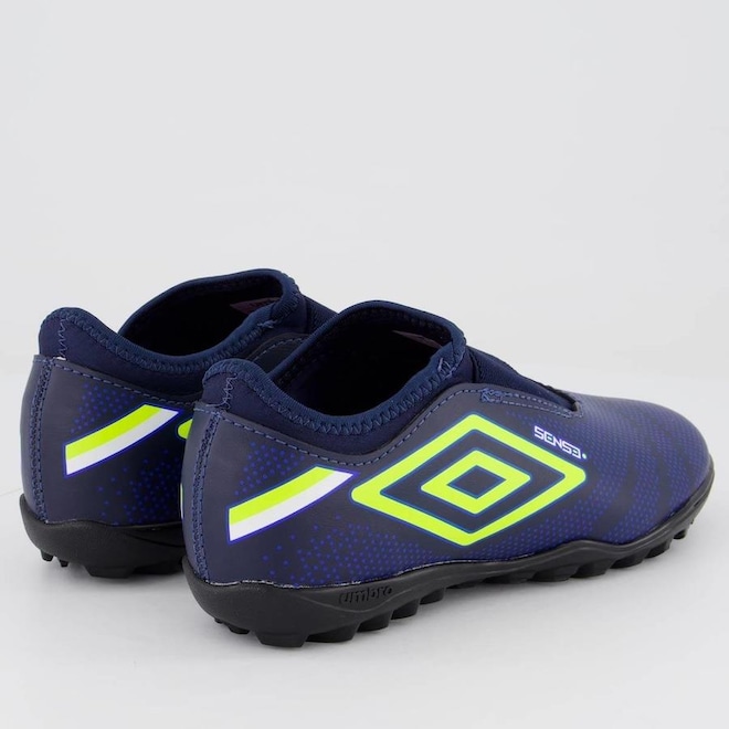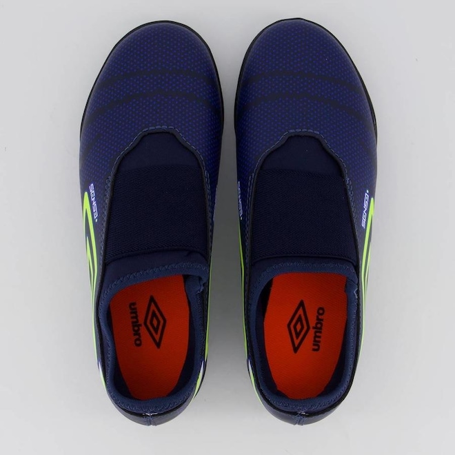 Desenvolvida exclusivamente para os mini craques, a Chuteira Society Umbro Sense Kids segue o modelo slip on, que dispensa a necessidade de atacador e oferece praticidade no calce. Seu design versátil e despojado com cores vivas traz faixa tensora na região do mediopé para um ajuste confortável. A base do cabedal é construída em tecido com elastano e a parte externa em material sintético laminado de fácil limpeza e manutenção. Possui sistema de ajuste em faixa de elástico na região do mediopé, grafismo personalizado em serigrafia simulando textura, Diamante Umbro em destaque na lateral, assinatura Sense aplicada na parte frontal externa e palmilha macia em EVA com poliéster forrado. O solado de futebol HG é construído todo em PVC monocolor.ref: M11V56
