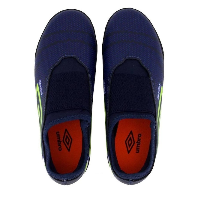 Desenvolvida exclusivamente para os mini craques, a Chuteira Society Umbro Sense Kids segue o modelo slip on, que dispensa a necessidade de atacador e oferece praticidade no calce. Seu design versátil e despojado com cores vivas traz faixa tensora na região do mediopé para um ajuste confortável. A base do cabedal é construída em tecido com elastano e a parte externa em material sintético laminado de fácil limpeza e manutenção. Possui sistema de ajuste em faixa de elástico na região do mediopé, grafismo personalizado em serigrafia simulando textura, Diamante Umbro em destaque na lateral, assinatura Sense aplicada na parte frontal externa e palmilha macia em EVA com poliéster forrado. O solado de futebol HG é construído todo em PVC monocolor.ref: M11V56