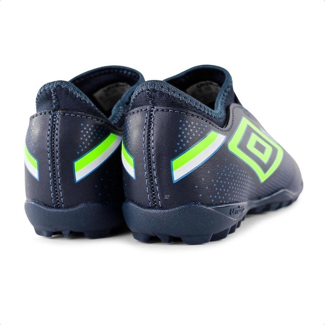 Possui sistema de ajuste em faixa de elástico na região do mediopé, grafismo personalizado em serigrafia simulando textura, Diamante Umbro em destaque na lateral.