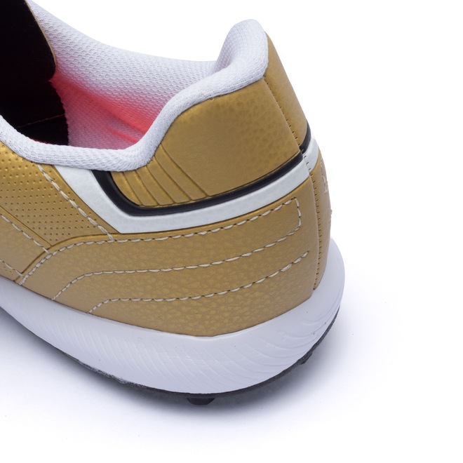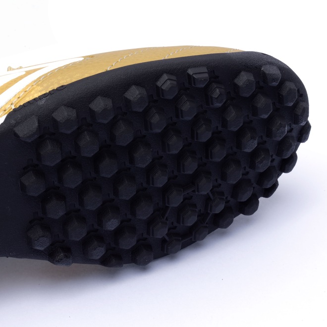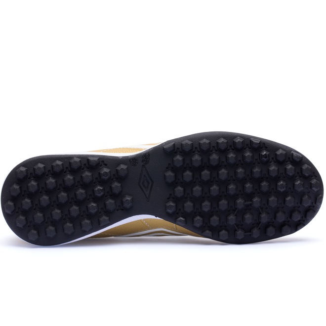 O solado é emborrachado com travas baixas, ideal para oferecer tração e agilidade, tornando cada jogada um lance de mestre.
