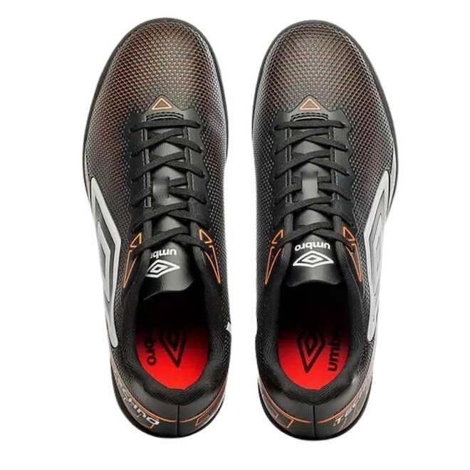 A Chuteira Society Umbro Techno exibe um design moderno e imponente com grip na parte frontal para auxiliar o controle direcional da bola nos momentos dos passes e chutes. O grafismo com efeito 3D oferece um visual estiloso para os jogadores de futebol society. Cabedal frequenciado construído em material laminado com textura na região frontal, onde ocorre maior contato com a bola e sensibilidade no momento do chute. Possui grafismos com efeito 3D, forro traseiro em Mesh respirável com acabamento superior luvado, Diamante Umbro na lateral, assinatura estilizada com o nome do modelo aplicada na lateral traseira e palmilha macia em EVA com tecido forrado. O solado de futebol HG é composto por borracha, que oferece durabilidade e aderência ao solo, com inserção da tecnologia STEALTH de amortecimento no calcanhar.ref: M12IUZ