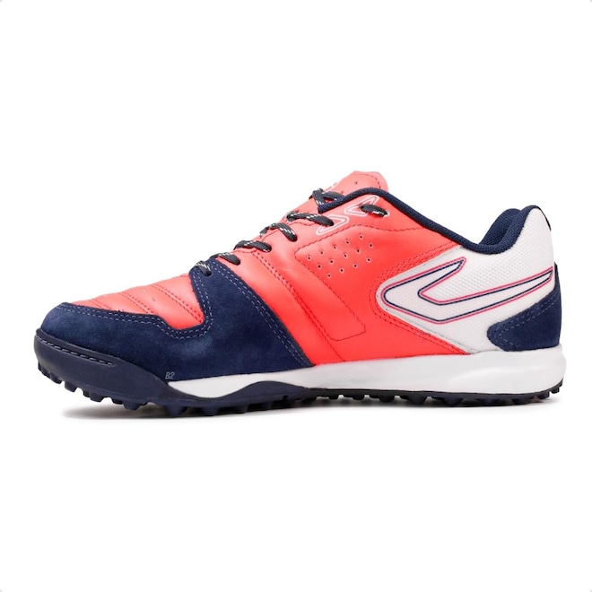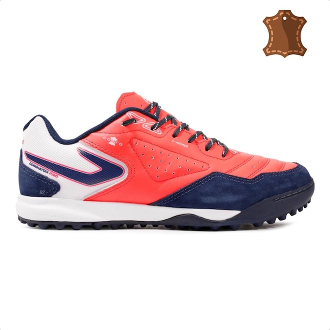 O cabedal confeccionado com tecnologia têxtil e curo, é macio e garante passes e chutes precisos.