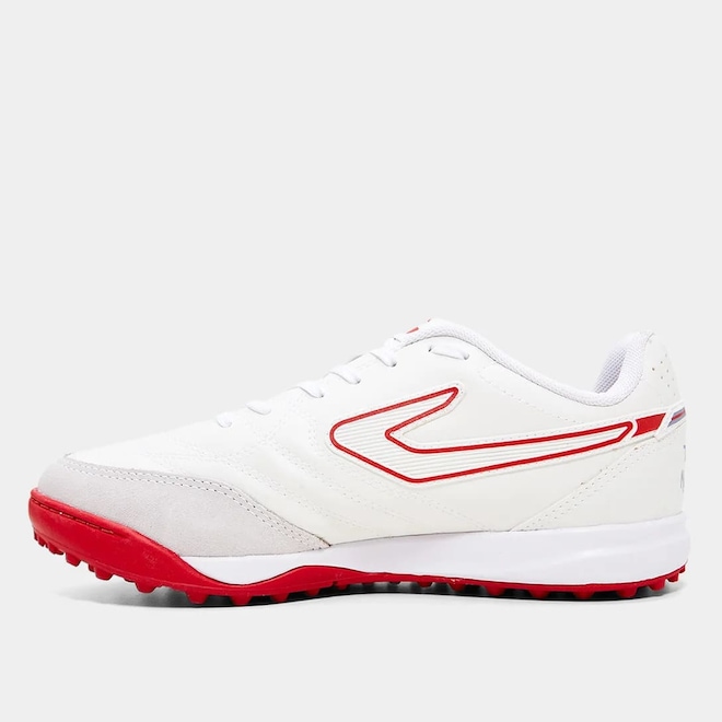Rabisque a zaga inteira com essa Chuteira Society Topper Maestro Club V! Produzida em materiais de alta qualidade, a chuteira unissex garante leveza e conforto. Seu cabedal em sintético conta com a tecnologia T-Control, que facilita no domínio da bola, enquanto o composto T-Support facilita a estabilidade, conferindo agilidade extra na mudança de direção. A sola em borracha proporciona aderência, que ajudam nos dribles rápidos, para deixar o marcador falando sozinho. Para desempenhar igual profissional, essa é a escolha certa. Não perca a chance, peça já sua chuteira society. Cabedal Sintético de Qualidade: O cabedal é feito de material sintético resistente e, segundo avaliações, bastante macio, proporcionando um bom toque na bola e conforto para os pés. Embora não seja couro natural como em algumas versões profissionais, o material é de boa qualidade para a faixa de preço. Amortecimento (Tecnologia T-Cushion): Um dos grandes diferenciais da linha Maestro (e presente na Club V) é a entressola com tecnologia T-Cushion. Ela é desenvolvida em EVA e oferece um excelente amortecimento, absorvendo o impacto e proporcionando uma sensação de maciez e conforto durante o jogo. Muitos consideram um dos melhores sistemas de amortecimento nessa faixa de preço no mercado. Solado Society (Travas Fixas): O solado é de borracha com travas fixas, ideal para gramados sintéticos. A combinação de travas cônicas e hexagonais proporciona boa aderência e estabilidade, especialmente em gramados secos. Em gramados molhados ou mais altos, pode haver um pouco mais de escorregamento, mas no geral, a tração é eficaz. Conforto Geral: A chuteira é elogiada por seu alto nível de conforto, com revestimento interno acolchoado e uma forma que se adapta bem ao pé. Ela tende a lacear um pouco com o uso, o que pode aumentar ainda mais o conforto. Design Clássico e Ajuste: A Maestro Club V mantém um design clássico da linha Topper. Possui uma abertura generosa e língua tradicional, o que facilita o calce. Alguns usuários relatam que a forma pode ser um pouco grande, e recomendam comprar um número menor.