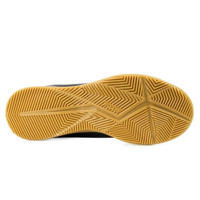 Solado: Borracha com ranhuras específicas para futebol em quadras.