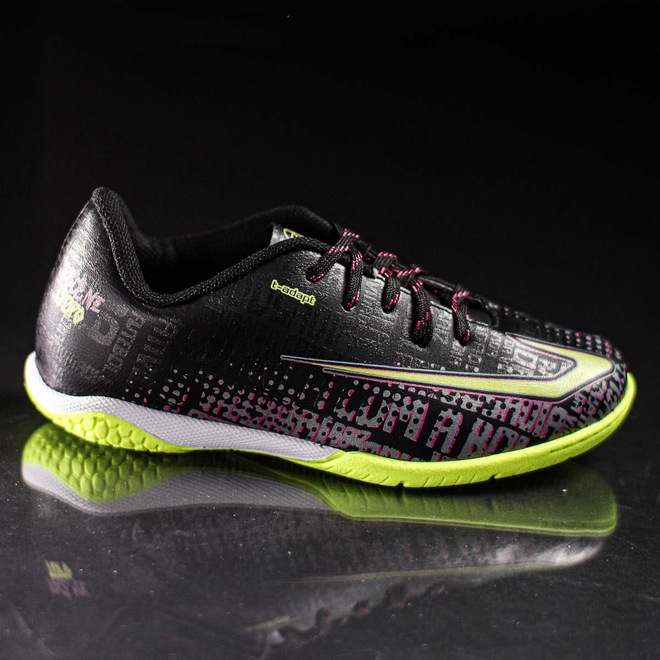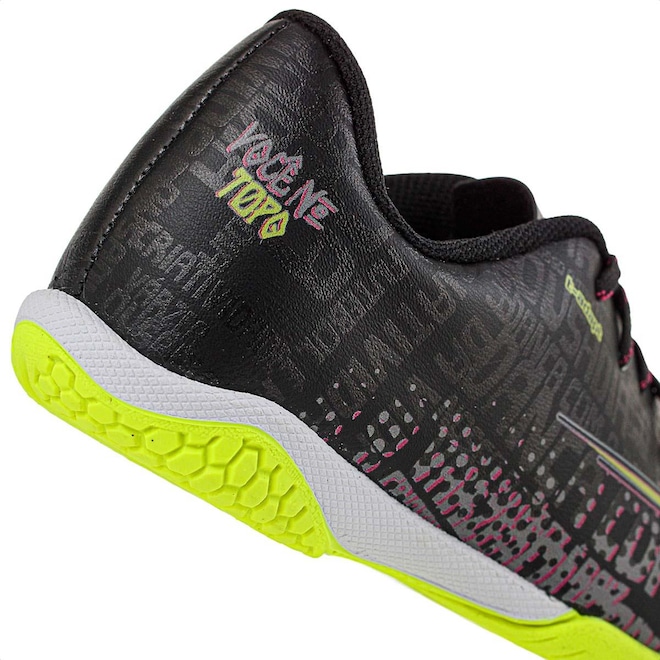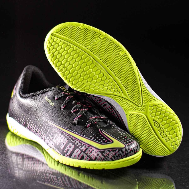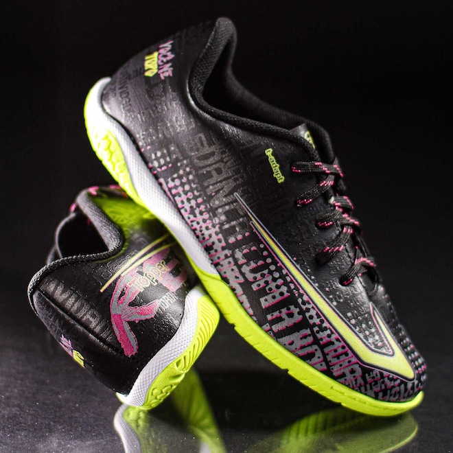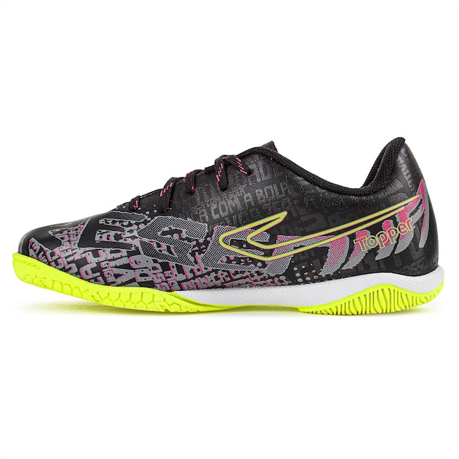 Chuteira Topper Futsal Resenha Preto Rosa e Amarelo ? Infantil. Prepare-se para brilhar em quadra com estilo e conforto! Ficha Técnica: Infantil Cor: Preto Rosa e Amarelo Tipo: Futsal Indicado para: Jogo Material: Sintético Estilo: Velocidade Tecnologia: Flex Zone, Non-Marking Definição da Tecnologia: Non-Marking: solado de borracha que oferece mais aderência ao solo; T-Adapt: que se adapta à forma do pé, oferecendo bem-estar e estabilidade; Flex Zone: pontos estratégicos no solado que proporcionam flexibilidade à chuteira. Trava: Sem Trava Cabedal: Em sintético para conforto e maciez. Solado: Borracha antiderrapante para quadras indoor e outdoor. Marca: Topper Conteúdo da embalagem: 1 par de Chuteira Topper Futsal Resenha Preto Rosa e Amarelo ? Infantil A Chuteira Futsal Infantil Topper Resenha é ideal para jovens jogadores que desejam se destacar. Com tecnologia T-Adapt, ela oferece conforto e ajuste perfeito, enquanto a Flex Zone proporciona flexibilidade durante as jogadas. A aderência do solado Non-Marking garante que você tenha tração em qualquer superfície.ref: M1630I
