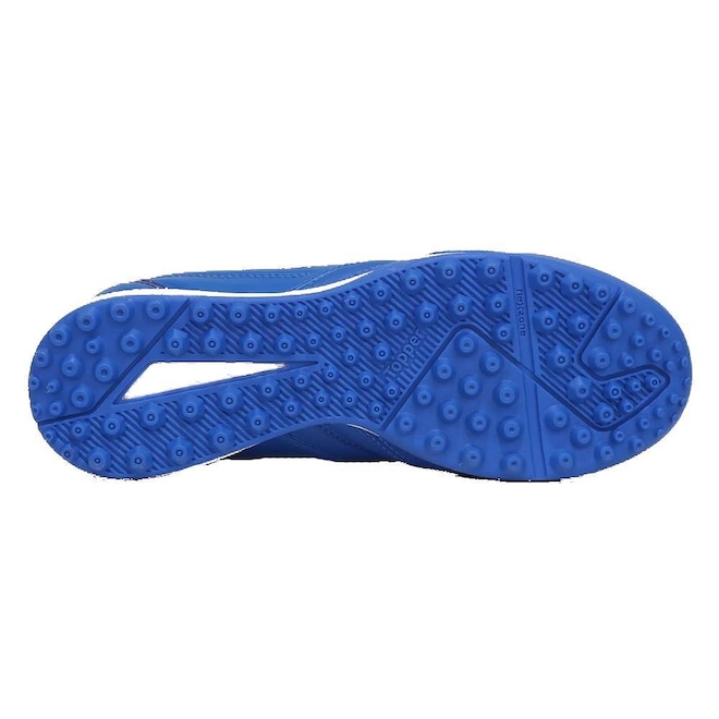 Já o solado é feito em borracha antiderrapante, com flex zone e micro travas, permitindo maior segurança e liberdade de movimentos para você realizar jogadas de craque nos campos society.