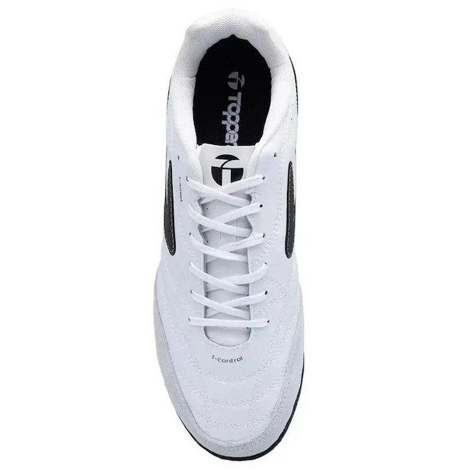 O logo Topper vem costurado nas laterais, com texturas que aumentam o controle de bola.