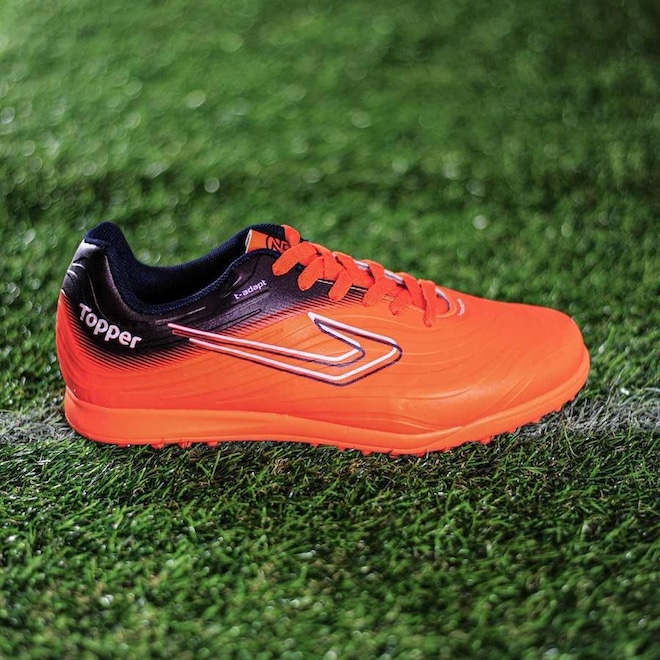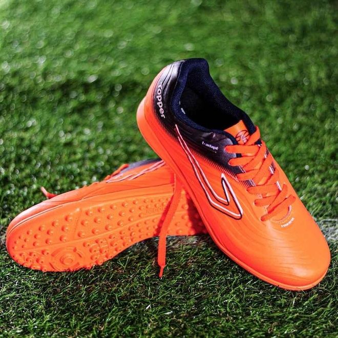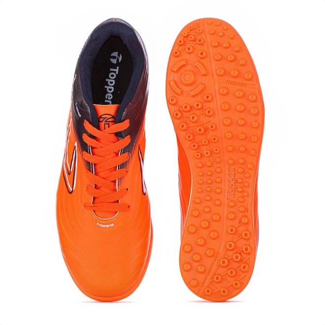 Chuteira Topper Society Forza III Laranja e Azul Marinho ? Masculino. Leve seu jogo para outro nível! Ficha Técnica: Cor: Laranja e Azul Marinho Gênero: Masculino Tipo: Society Material: Sintético Trava: Fixa Cabedal: Sintético para conforto e maciez Solado: Borracha Marca: Topper Conteúdo da embalagem: 1 par de Chuteira Topper Society Forza III Laranja e Azul Marinho - Masculino Desenvolvida para jogadores ágeis, a Chuteira Topper Society Forza III conta com travas que proporcionam excelente tração no gramado e facilitam mudanças rápidas de direção. O cabedal sintético garante conforto, enquanto o design moderno deixa você com estilo em campo.ref: M160JC