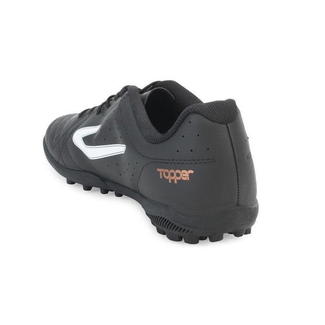 Nome: Chuteira Topper Society Top Boleiro V. Gênero: Masculino. Indicado Para: Society. Ocasião: Treino e competição. Material Externo: Alternativo com costuras. Fechamento: Cadarço. Material Interno: Têxtil acolchoado. Palmilha: EVA forrada, removível. Solado: Borracha travas específicas para quadra society. Peso do Produto: 836 g (o peso varia de acordo com a numeração). Garantia do Fabricante: Contra defeito de fabricação. Origem: Nacional. Código Produto: 01230698. Marca: Topper.ref: M127BY