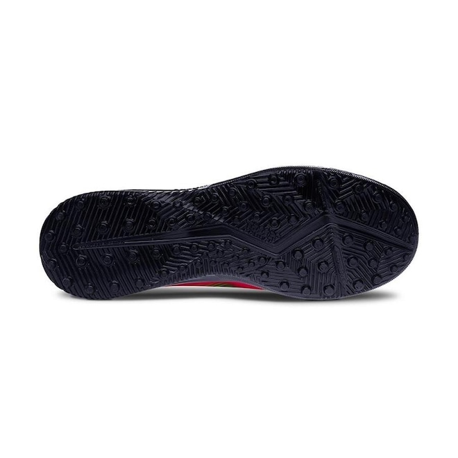 O solados da chuteira, são emborrachados para oferecem mais segurança, conta com travas baixas que te oferece mais segurança para arriscar dribles, passes e chutes nos campos de grama sintética.