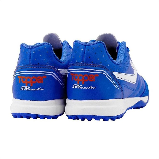 Brilhe nos jogos de futebol com a Chuteira Topper Maestro IV! Com um design clássico e discreto, seu cabedal é confeccionado em material resistente e flexível, com costuras que aumentam a durabilidade. Conta com reforço na biqueira e um calcanhar acolchoado com pequenos furos para melhor respirabilidade. O logo Topper vem costurado nas laterais, com texturas que aumentam o controle de bola. A entressola conta com uma camada em EVA para auxiliar no amortecimento e conforto. Já o solado é feito em borracha antiderrapante, com flex zone e micro travas, permitindo maior segurança e liberdade de movimentos para você realizar jogadas de craque nos campos society. Aproveite e garanta a sua!