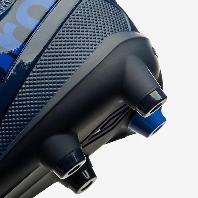 -Solado: Campo FG de 10 travas médias hexagonais e bicolores, com trava central e textura de base é construÃdo em TPU, proporcionando excelente tração em todas as direções e maior durabilidade.