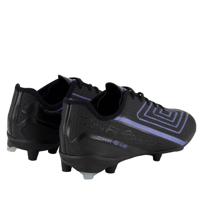 A Chuteira Campo Umbro Chrome é ideal para jogadores que necessitam do toque perfeito, realizam mais passes e percorrem distâncias maiores dentro doas quadras. Seu aspecto fosco com detalhes cromados, que adicionam sofisticação ao modelo. Cabedal frequenciado construÃdo em novo composto de material laminado com aspecto fosco e texturizado, que auxilia o controle direcional do chute. Possui forro traseiro em tecido Mesh respirável com acabamento premium em debrum de tecido, espuma interna para um ajuste confortável e macio no pé durante o uso, detalhes em serigrafia metalizada, maxi Diamante Umbro Outline personalizado na parte frontal externa, assinatura com o nome do modelo em destaque na lateral e palmilha macia em EVA forrado. O solado de campo FG de 10 travas médias hexagonais e bicolores, com trava central e textura de base é construÃdo em TPU, proporcionando excelente tração em todas as direções e maior durabilidade. Seja na hora de marcar um gol decisivo ou criar uma jogada espetacular, essa chuteira proporciona o equilÃbrio perfeito entre desempenho, conforto e estilo, permitindo que os jogadores alcancem todo o seu potencial e dominem o jogo.