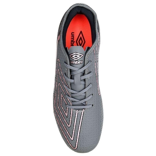 A Chuteira Campo Umbro Chrome é ideal para jogadores que necessitam do toque perfeito, realizam mais passes e percorrem distâncias maiores dentro doas quadras. Seu aspecto fosco com detalhes cromados, que adicionam sofisticação ao modelo. Cabedal frequenciado construÃdo em novo composto de material laminado com aspecto fosco e texturizado, que auxilia o controle direcional do chute. Possui forro traseiro em tecido Mesh respirável com acabamento premium em debrum de tecido, espuma interna para um ajuste confortável e macio no pé durante o uso, detalhes em serigrafia metalizada, maxi Diamante Umbro Outline personalizado na parte frontal externa, assinatura com o nome do modelo em destaque na lateral e palmilha macia em EVA forrado. O solado de campo FG de 10 travas médias hexagonais e bicolores, com trava central e textura de base é construÃdo em TPU, proporcionando excelente tração em todas as direções e maior durabilidade. Seja na hora de marcar um gol decisivo ou criar uma jogada espetacular, essa chuteira proporciona o equilÃbrio perfeito entre desempenho, conforto e estilo, permitindo que os jogadores alcancem todo o seu potencial e dominem o jogo.