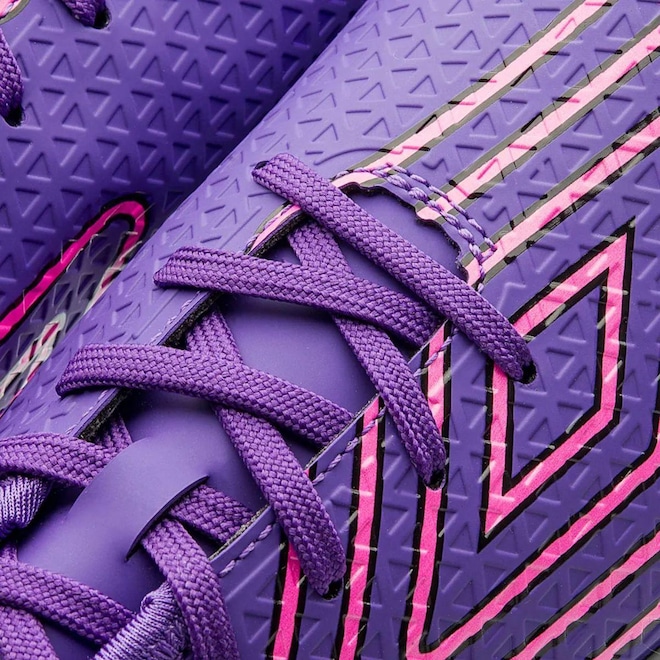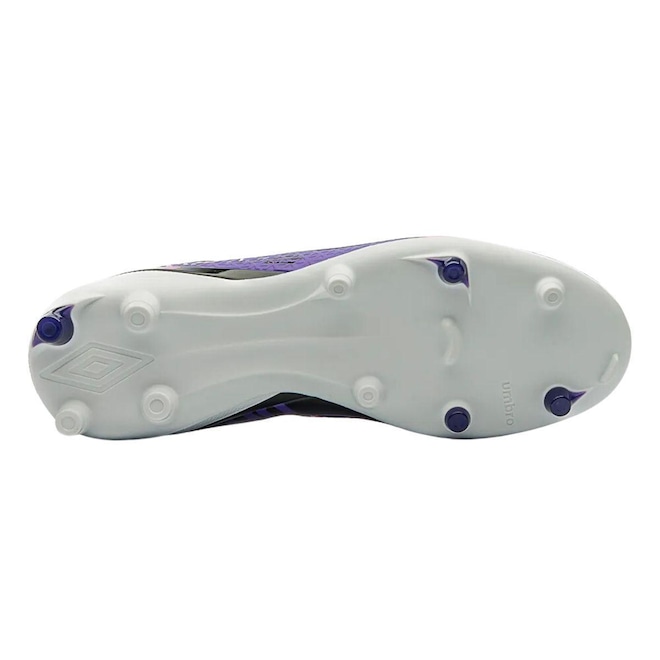-Solado: Campo FG de 10 travas médias hexagonais e bicolores, com trava central e textura de base é construÃdo em TPU, proporcionando excelente tração em todas as direções e maior durabilidade.