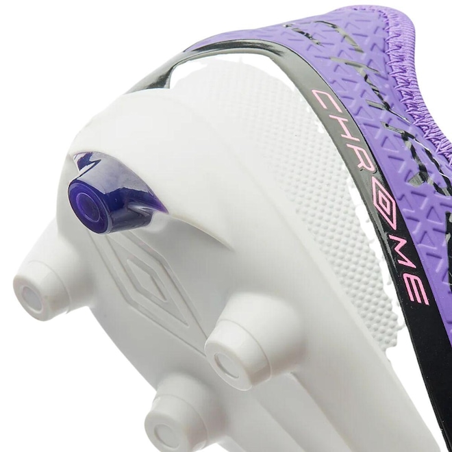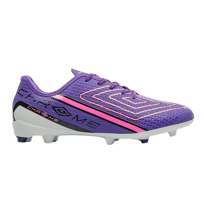 A Chuteira Campo Umbro Chrome é ideal para jogadores que necessitam do toque perfeito, realizam mais passes e percorrem distâncias maiores dentro doas quadras. Seu aspecto fosco com detalhes cromados, que adicionam sofisticação ao modelo. Cabedal frequenciado construÃdo em novo composto de material laminado com aspecto fosco e texturizado, que auxilia o controle direcional do chute. Possui forro traseiro em tecido Mesh respirável com acabamento premium em debrum de tecido, espuma interna para um ajuste confortável e macio no pé durante o uso, detalhes em serigrafia metalizada, maxi Diamante Umbro Outline personalizado na parte frontal externa, assinatura com o nome do modelo em destaque na lateral e palmilha macia em EVA forrado. O solado de campo FG de 10 travas médias hexagonais e bicolores, com trava central e textura de base é construÃdo em TPU, proporcionando excelente tração em todas as direções e maior durabilidade. Seja na hora de marcar um gol decisivo ou criar uma jogada espetacular, essa chuteira proporciona o equilÃbrio perfeito entre desempenho, conforto e estilo, permitindo que os jogadores alcancem todo o seu potencial e dominem o jogo.
