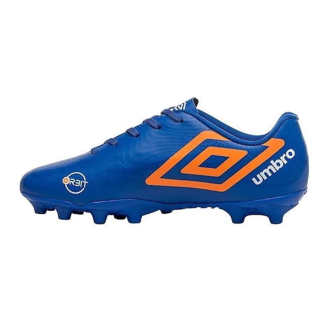 A Chuteira Campo Umbro Orbit exibe um design autêntico e contemporâneo com grafismos exclusivos que trazem linhas orgânicas em movimento. Perfeita para inspirar você a alcançar o seu melhor desempenho em campo. Cabedal confeccionado em material laminado com design inspirado no modelo Adamant. Possui aplicação de grafismo exclusivo em serigrafia com duas cores, Diamante Umbro inclinado em destaque na lateral, assinatura Orbit na parte frontal e palmilha macia em EVA com poliéster forrado. O solado de campo FG de 14 travas, com costura de reforço frontal, é composto por PVC.
