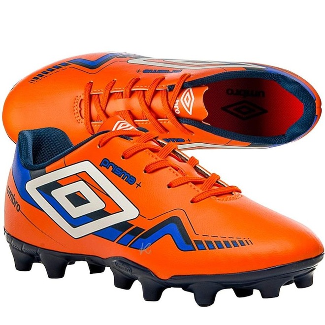 INFORMAÇÃO IMPORTANTE: Todos os modelos são ORIGINAIS, adquiridos diretamente pela fábrica e para sua garantia, são acompanhados da NOTA FISCAL. A Chuteira de Campo Umbro Prisma + segue um design moderno e policromático, inspirado nos modelos clássicos dos anos 90. Indicada para os jogadores iniciantes, ela traz cores que são tendência dentro das quatro linhas com o melhor do estilo Umbro. O cabedal (parte superior do calçado) é construído em material sintético de fácil manutenção com textura suave e acabamento laminado. Possui arte gráfica com cores contrastantes em serigrafia, Diamante Umbro na lateral, forro interno em poliéster e palmilha macia em EVA com tecido forrado. O solado de campo FG contém 14 travas em PVC com costura de reforço na parte frontal para maior durabilidade e firmeza. Se desafia e se jogue no esporte com a Chuteira Umbro Campo Prisma + Masculino! Nome: Chuteira Umbro Campo Prisma + Gênero: Masculino Cor: Preto e Laranja; Cinza e Laranja; Marinho e Verde; Laranja e Azul.(Opções de Cores) Indicado Para: Dia a Dia. Estilo: Velocidade Fechamento: Cadarço Altura Do Cano: Cano Baixo Composição: - Cabedal: Sintético com fechamento em cadarço. - Palmilha: Macia em EVA e Removível - Solado: Borracha com travas altas para futebol de campo - Lingueta: Fina e Flexível - Entressola: Camada em EVA para amortecimento leve - Material: Sintético - Forro: Revestimento em material têxtil acolchoado - Trava: Fixa Tipo: Campo Pisada: Neutra Faixa Etária: Tenis Adulto Garantia Do Fabricante: Contra defeito de fabricação. Origem: Nacional Marca: Umbro AVISO IMPORTANTE Meia: A cor e marca serão enviadas de acordo com a disponibilidade de estoque. Foto Meramente Ilustrativa. (Todas as meias são originais)ref: M0YWD5
