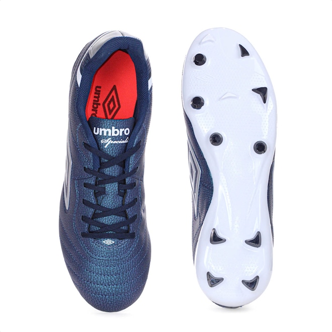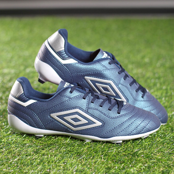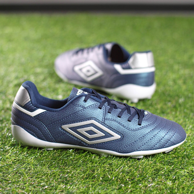 Estilo clássico, performance moderna. Conquiste o campo! Chuteira Umbro Campo Speciali Classic Azul Marinho e Cinza - Masculino Ficha Técnica: Marca: Umbro Gênero: Masculino Cor: Azul marinho com efeito iridescente com detalhes em cinza Cabedal: Material sintético com costuras programadas para controle de bola Forro: 100% poliéster Palmilha: 90% poliuretano (PU), 10% poliéster Sola: 100% TPU bicolor, oferece firmeza e estabilidade Fechamento: Cadarço Lingueta: Fina e flexível Indicação de uso: Jogos de futebol em campo Detalhes: Diamante Umbro nas laterais e logotipo da marca na lingueta Alie o estilo clássico ao desempenho avançado com a Chuteira Umbro Campo Speciali Classic. Por que investir? Seu cabedal sintético, projetado com costuras estratégicas, proporciona controle absoluto da bola, enquanto o solado em TPU bicolor garante firmeza e agilidade durante os dribles. Leveza, conforto e estabilidade se unem para elevar sua performance. Conteúdo da embalagem: 1 par de Chuteira Umbro Campo Speciali Classic Azul Marinho e Cinza - Masculino