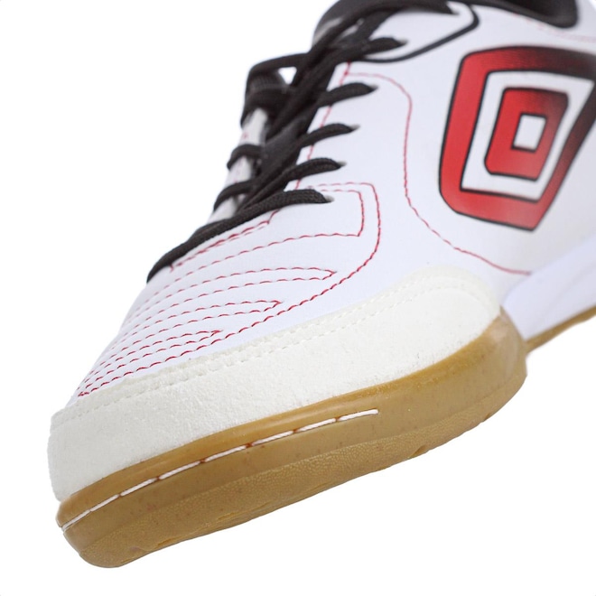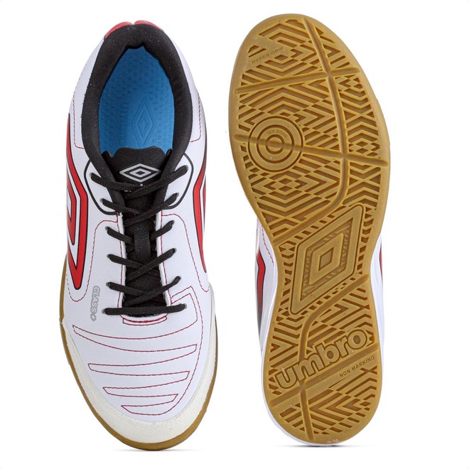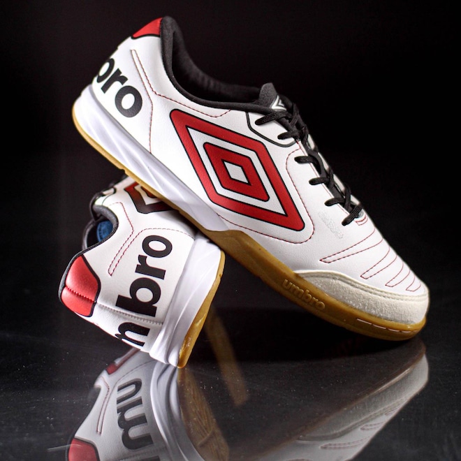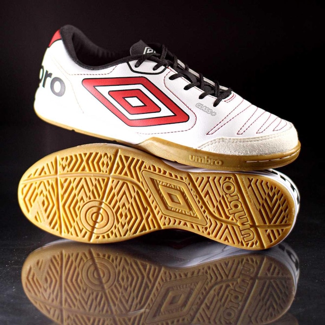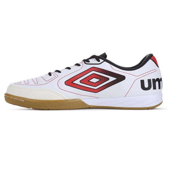 Chuteira Umbro Futsal Class + - Agilidade e Estabilidade nas Quadras Ficha Técnica: Modelo: Chuteira Futsal Umbro Class+ Solado: TPU (70%), EVA (30%) Cabedal: Sintético (90%), Camurça (10%) Forro: Poliéster Palmilha: EVA (90%), Poliéster (10%) Cor: Branco, Vermelho e Preto Gênero: Masculino Indicação: Futsal A Chuteira Umbro Futsal Class+ é a escolha certa para quem busca agilidade e estabilidade nas partidas de futsal. Com uma combinação de materiais leves e resistentes, como o cabedal sintético e a camurça, ela oferece controle excepcional sobre a bola. A entressola em EVA proporciona amortecimento suave, enquanto o solado de TPU garante tração perfeita em quadras indoor.ref: M164LJ