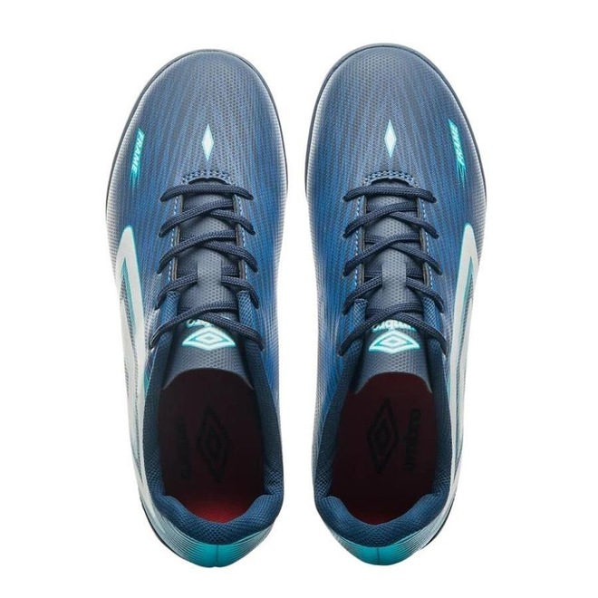 Possui serigrafia de grafismos personalizados em degradê com duas cores, Diamante Umbro estilizado na lateral, forro interno em poliéster e palmilha macia em EVA com forro em tecido.