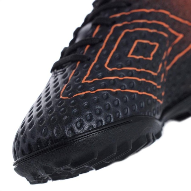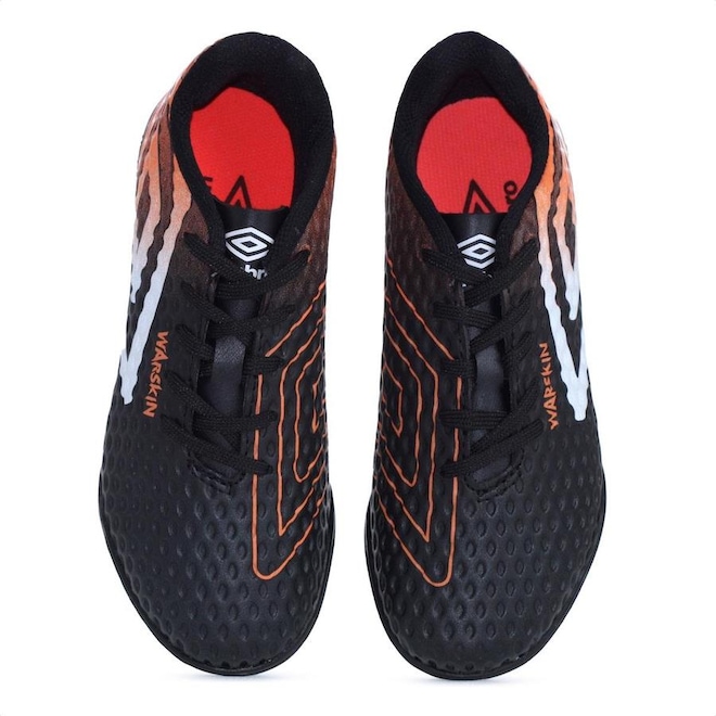 Chuteira Umbro Society Warskin JR Preto Laranja e Branco - Infantil Apresentamos a Chuteira Umbro Warskin, uma escolha incomparável para jogadores que buscam conforto e precisão em cada lance. Com design moderno e tecnologia avançada, esta chuteira foi projetada para elevar o seu desempenho dentro das quadras. O cabedal em material sintético oferece durabilidade e resistência, enquanto o solado de borracha com mini travas proporciona segurança e estabilidade durante as partidas mais desafiadoras. Seu forro em material têxtil acolchoado garante conforto extra, e a palmilha em EVA, forrada e removível, oferece amortecimento e suporte aos pés. A Chuteira Umbro Warskin Jr é especialmente indicada para jogadores mirins em busca de domínio e controle. Seu cabedal inovador apresenta um grafismo em degradê e uma textura integral que utiliza um novo tipo de cilindro para proporcionar um melhor grip no momento do chute. O design assimétrico do cabedal, construído em material laminado, oferece um grip superior durante o contato com a bola. Além disso, a chuteira apresenta serigrafia em duas cores com efeito degradê, assinatura Warskin próxima ao atacador, o icônico Diamante Umbro em destaque na lateral e uma palmilha macia em EVA com tecido de poliéster forrado. Para garantir tração e durabilidade, o solado de borracha com mini travas, proporcionando maior aderência e resistência em qualquer tipo de superfície. Se você busca uma chuteira que alie conforto, precisão e estilo, a Chuteira Umbro Warskin é a escolha perfeita para você dominar os campos sintéticos com confiança e destaque. FICHA TÉCNICA: Gênero: Infantil Indicação: Society Cabedal: Sintético Cor: Preto com detalhes em laranja e branco Solado: Borracha com mini travas Ajuste: Cadarço Marca: Umbro Conteúdo da embalagem: 1 par de Chuteira Umbro Society Warskin JR Preto Laranja e Branco - Infantilref: M142L6