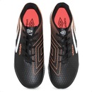 Chuteira Umbro Society Warskin  Preta e Laranja  - Masculina As chuteiras da linha Warskin da Umbro são a melhor pedida pra quem busca conforto e precisão em seu jogo. Possui cabedal em material sintético com design moderno, além de solado de borracha com micro travas fixas que passam segurança durante as partidas mais difíceis. Seu forro tem revestimento em material têxtil acolchoado e a palmilha em EVA é forrada e removível.   FICHA TÉCNICA: Gênero: Masculino Indicação: Futebol society Cabedal: Sintético Cor: Preto com detalhes em Laranja Solado: Borracha Ajuste: Cadarço Marca: Umbro   Conteúdo da embalagem: 1 par de  Chuteira Umbro Society Warskin Preta e Laranja - Masculina