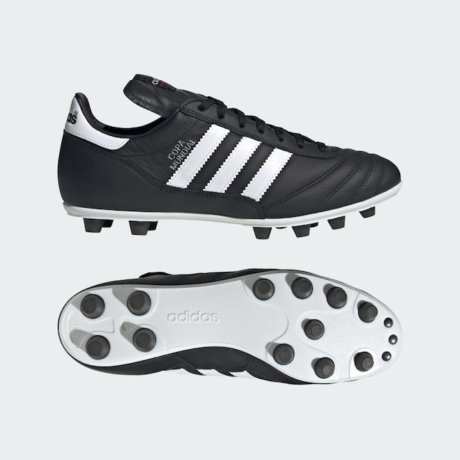 Lançada pela primeira vez em 1979, a adidas Copa Mundial tem uma longa e consagrada história como uma das chuteiras mais icônicas do futebol mundial. Fabricadas na Alemanha, estas chuteiras contam com cabedal em couro macio para um ajuste confortável e um toque suave. O solado da chuteira decampo oferece tração sólida em campos naturais secos.
