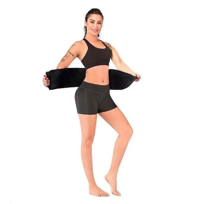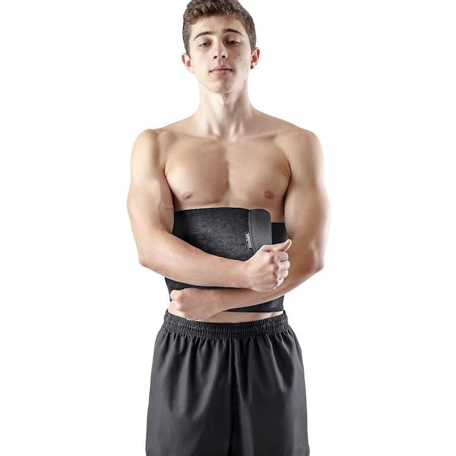 Instruções de Uso: Posicione a cinta na região do abdômen de forma que as abas fechem no corpo, ajustando através das abas de fecho aderente.