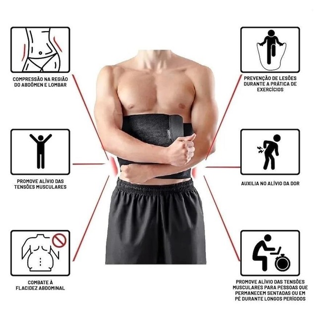 Ajuda a combater a flacidez abdominal, indicada no uso pós-parto e pós-cirúrgico (abdominal e de coluna lombar), também indicado para pessoas que levantam peso.