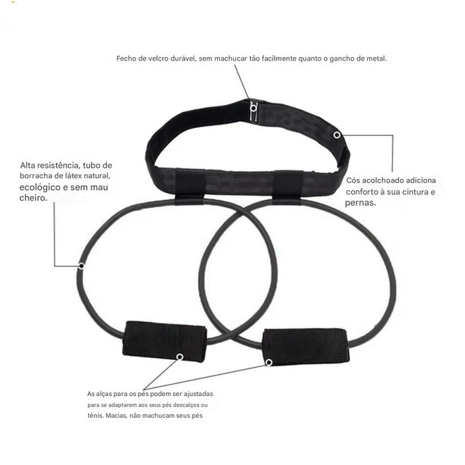 Elásticos Anatômicos: Feitos em PVC com travas de segurança, proporcionando maior estabilidade durante os exercícios.