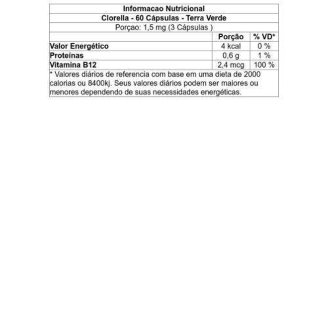 Vitamina Terra Verde Clorella em Capsulas - 60 Cápsulas